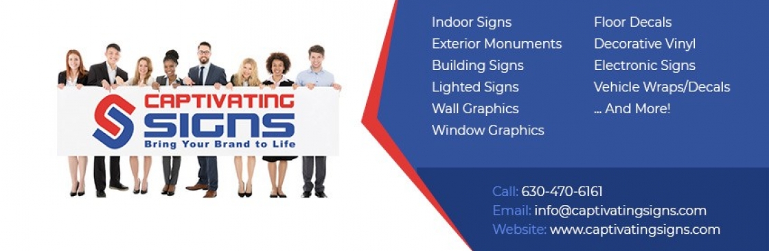 Captivating Signs is the premier sign company in Naperville and Chicago, IL, delivering cutting-edge visual communication solutions. As a leader in the signage industry, we specialize in crafting custom signs that elevate brands and captivate audiences. Whether you're searching for "custom signs near me" or need a standout presence at tradeshows and exhibitions, we have you covered. Our offerings include Channel Letters, Monument Signs, Vehicle Wraps, Wall Murals, Indoor Signs, Lobby Signs, and more. Combining artistic finesse with technological prowess, we transform ideas into stunning realities. From dynamic LED displays to sophisticated interior signage, we cater to diverse business needs. Our dedicated team ensures each project reflects the unique identity and vision of our clients. At Captivating Signs, we go beyond signage—we create memorable brand experiences that leave an indelible mark.